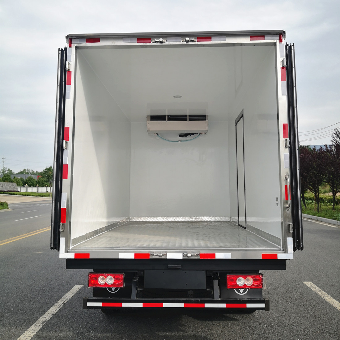 詳細配置:3360軸距,F2.8NS6B131康明斯130馬力,5檔變速箱, 7.00R16鋼絲胎,斷氣剎 ,巡航 、空調 、中控鎖 、電動門窗, 遙控鑰匙,ABS ,動力轉向。上裝配置:廂體采用內外玻璃鋼,中間8CM聚氨酯保溫板,后雙開門,廂體右側靠前開側門,底部鋁花紋板。鋁合金型材包邊,門鎖件均為不銹鋼。