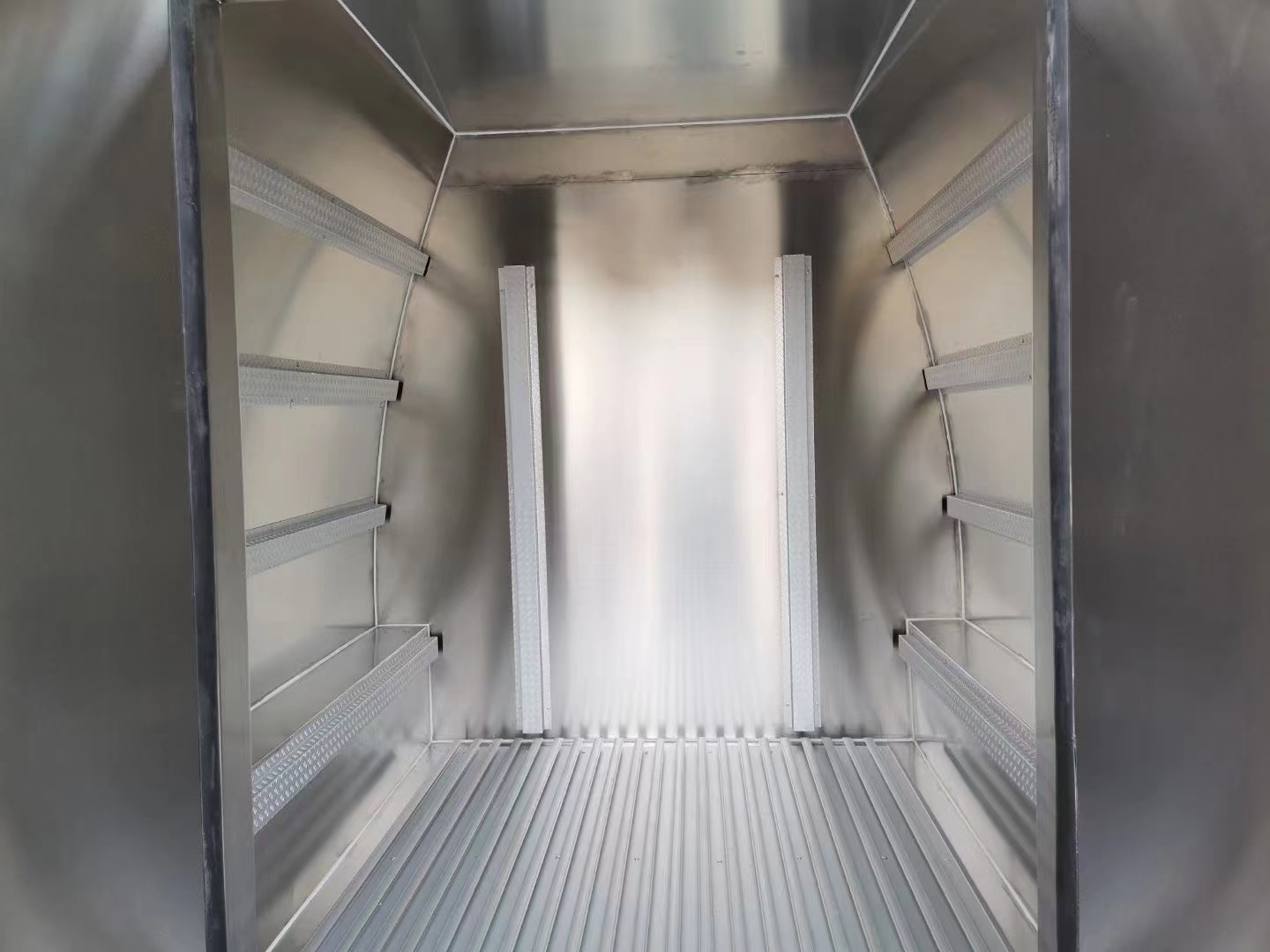 疫苗冷鏈車整車廂體使用生物安全級(jí)箱體材料,即保持廂內(nèi)溫度均衡,又有效抑制細(xì)菌滋生。廂體采用“三明治”式板粘接工藝:內(nèi)外壁板均選用優(yōu)質(zhì)的機(jī)制玻璃鋼板,美觀結(jié)實(shí);中間保溫材料選用新型80mm厚聚氨酯發(fā)泡材料,保溫性能;廂體周邊采用現(xiàn)代高新技術(shù)包邊,整體強(qiáng)度大、性能好。