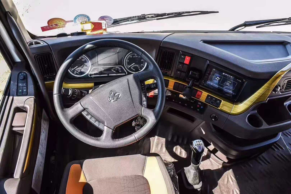 底盤配置: 東風柳汽H73D高頂雙臥豪華版駕駛室,玉柴400馬力國六發動機(YCK09400-60),12JSD180TA(鋁)變速箱,282(8)車架,2*5.5T盤式前橋,后橋2*440/ 3.7/加寬制動器,12R22.5真空防爆胎,板簧3/3/-,400L鋁合金油箱,全氣囊駕駛室懸置、電動液壓翻轉、電動玻璃升降器、自動空調、真皮多功能方向盤、電動電加熱后視鏡、定速巡航系統、WABOC閥、ABS、中控鎖、輕量化鋼圈、前置排氣管、前輪防爆胎裝置、排氣火花熄滅器、危險品運輸頂燈、ECU限速裝置(限速80km/h)、駕駛室電源總開關、導靜電橡膠拖地帶、EBS(電空制動系)、FCWS/LDWS(前撞/車道偏離預警)、TPMS(前軸單臺胎壓監測)、AEBS(主動剎車系統)、ESC(電子穩定控制系統)
