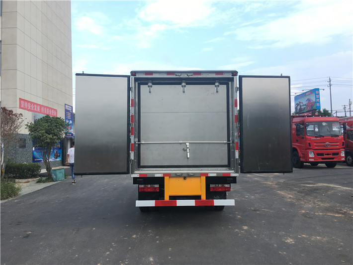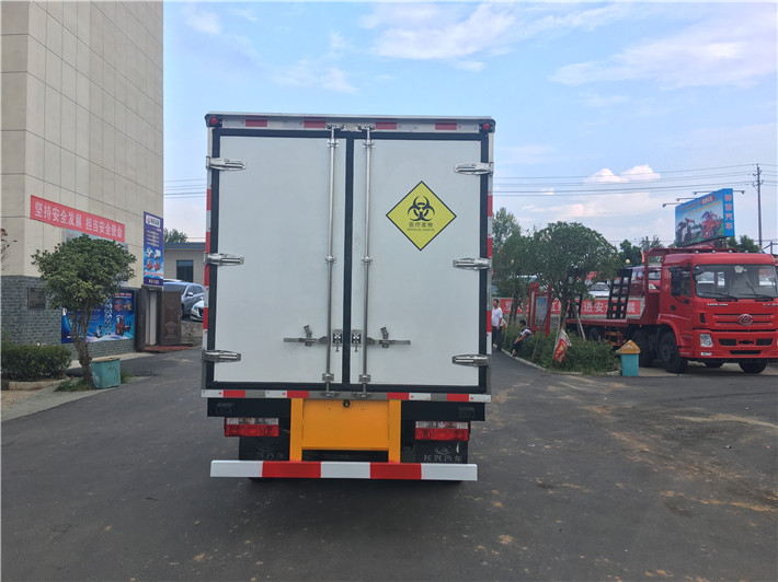 箱體采用外玻璃鋼內不銹鋼材質制成,箱體內無死角,加裝噴霧消毒,紫外線滅菌燈,尾部為雙層密封門,防滲漏,污水箱,加裝-5度制冷機組,低溫消毒。