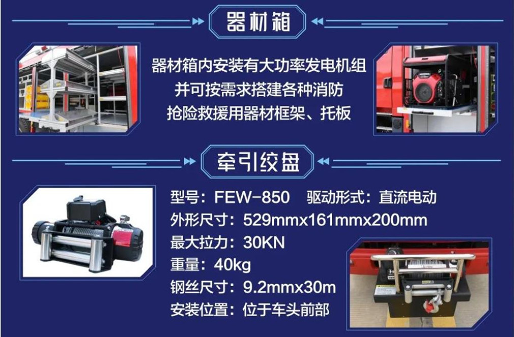 3.隨車配備高規(guī)格優(yōu)質消防器材,方便應急救援的使用。