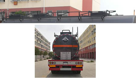 | 采用適用于牽引危險品半掛車的牽引車。選裝不同樣式的擋泥板,可選工具箱位置。可選裝襯塑工藝。運輸類項號:8,罐體有效容積:26.9立方米,罐體尺寸:長9400mm,直徑(前/后)1950mm/2150mm。防護材料:Q235B碳鋼,連接方式:左右側面及后下部防護均采用焊接連接,后部防護斷面尺寸(mm):140?0,后部防護離地高度(mm):500。ABS生產廠家/型號:梁山海納電子科技發展有限公司/HNABS-4S/2M。危險貨物運輸車輛的類型(AT型車輛)。 |