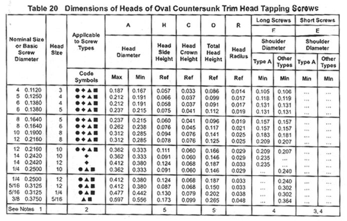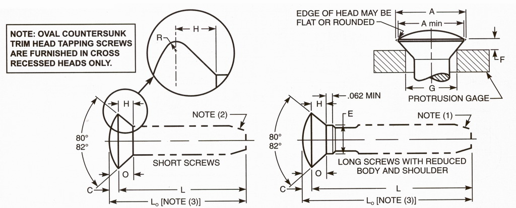 Heads of Oval Countersunk Trim Head Tapping Screws