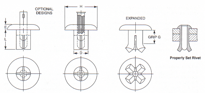 Open end blind rivets, Closed end blind rivets, Multigrip type blind rivets, Peel type blind rivets, Grooved type blind rivets, Hammer drive rivets, color-painted blind rivets, Monobolt blind rivets, H-lock blind rivets, Bulb type blind rivets, Rivet insert nuts, Rivet Studs.