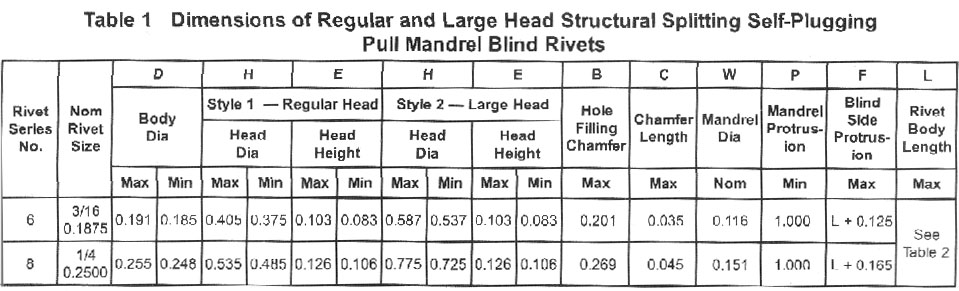 Regular and Large Head Structural Splitting Self-Plugging Pull Mandrel Blind Rivets