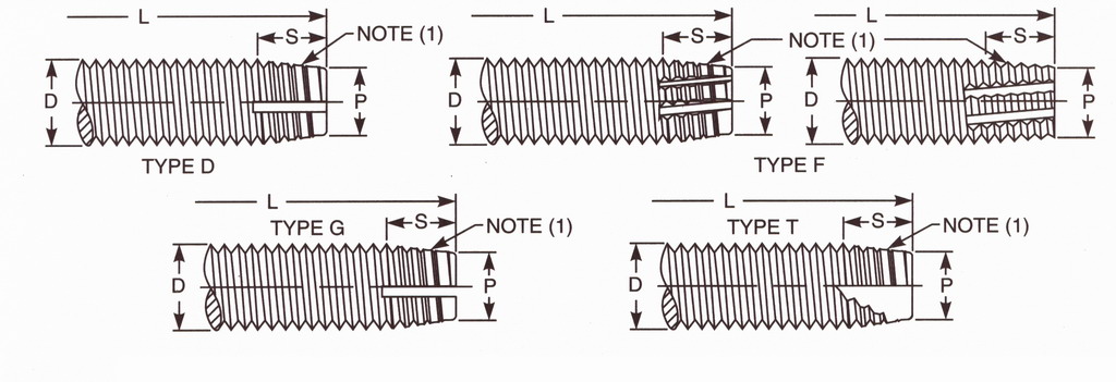 Threads and Points for Types D,F,G, and T Thread Cutting Tapping Screws
