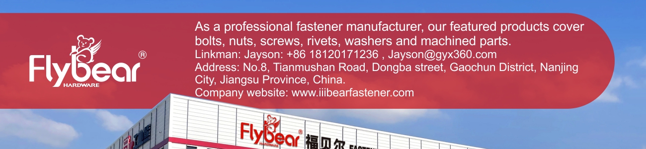 Nanjing Flybear Hardware Products Co., Ltd. is located in Nanjing--the capital of Jiangsu, with long history and convenient transportation. It's the first professional manufacturing enterprise under Flybear Fastening System, combining design, manufacture, inspection and sales together. Our main products include stainless steel double ended studs, U/V bolts, fully threaded rods, T head bolts and nuts, machine screws, high precision turned parts, kinds of stampings, riveting screws and nuts, non-standard products according to customers' requirements.