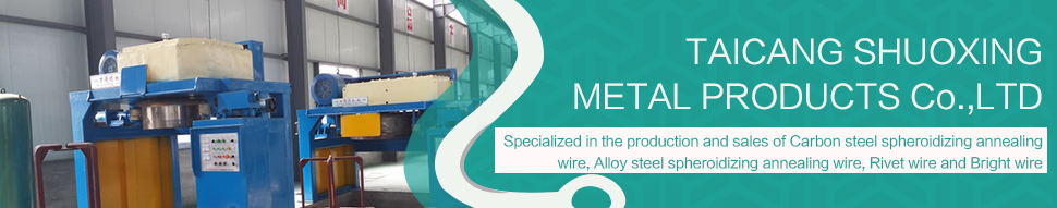 TAICANG SHUOXING METAL PRODUCTS CO.,LTD, established and put into production in 2012. Company factory is located in ShaXi GuiZhuang Industrial Park TaiCang city, JiangSu province, near G15 high-speed exit, having convenient transportation. It is a company specialized in production and sales of Carbon steel spheroidizing annealing wire, Alloy steel spheroidizing annealing wire, rivet wire, bright wire. The products are mainly applied in the down stream customers like the suppliers of precision electronic screw, building screws, auto-car fasteners, rivets, precision springs and various Precision Machinery Elements etc.